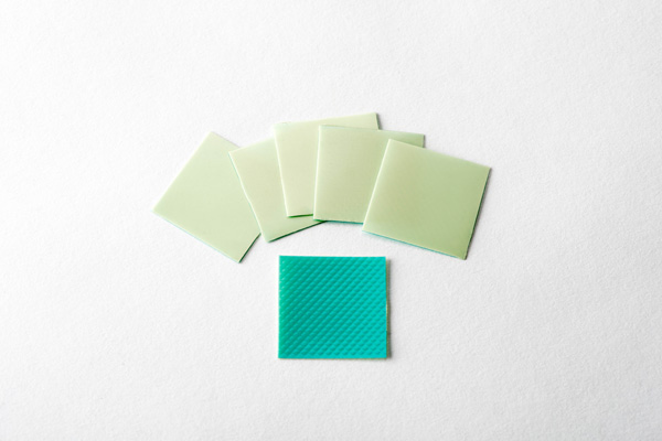 THERMATTACH双面胶带的奇异的高低(压花)纹路使整合性最好/气穴最少/,耐久试验批注CHOMERICS的高低面双面胶带的热性能和机械性能均优于平面的导热胶带.
